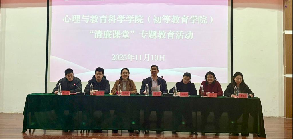 心理与教育科学学院(初等教育学院)组织“清廉课堂”主题教育活动。会议由学院党委书记刘玉宝主讲,学院辅导员、 百余名学生干部、入党积极分子及发展对象参加会议。