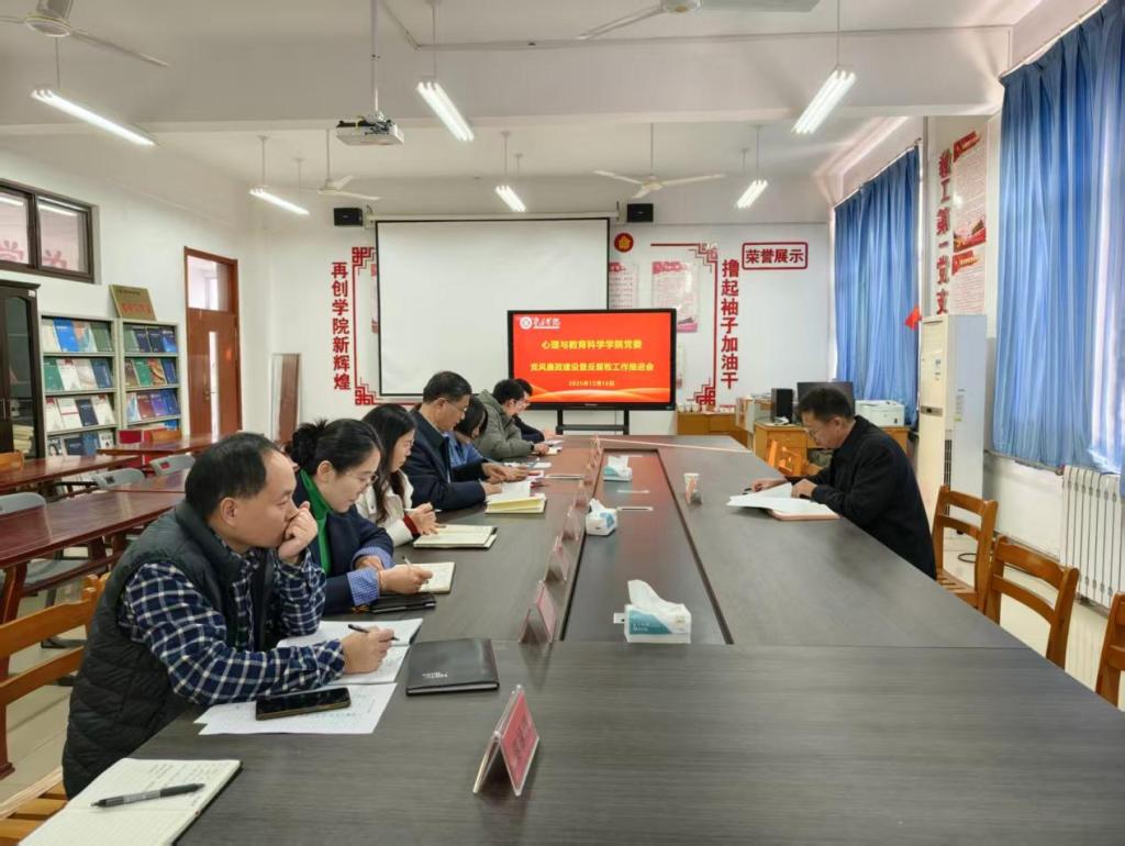 12月16日,心理与教育科学学院党委在学院资料室,召开党风廉政建设及反腐败工作推进会。学校纪委委员、总会计师轩庆明到会指导,学院处科级干部、各支部书记及党员代表参加会议,会议由学院党委书记刘玉宝主持。