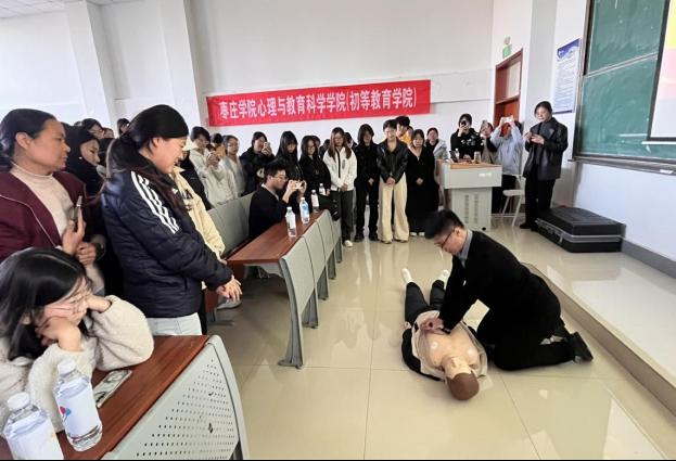 11月5日下午,心理与教育科学学院(初等教育学院)在教师教育楼216教室举办了院前急救知识科普讲座。讲座邀请了北京中医药大学东方医院枣庄医院急诊科副护士长、山东省红十字救护师资郑紫妍及急诊科护理团队共4人现场授课,百余名学生参加。