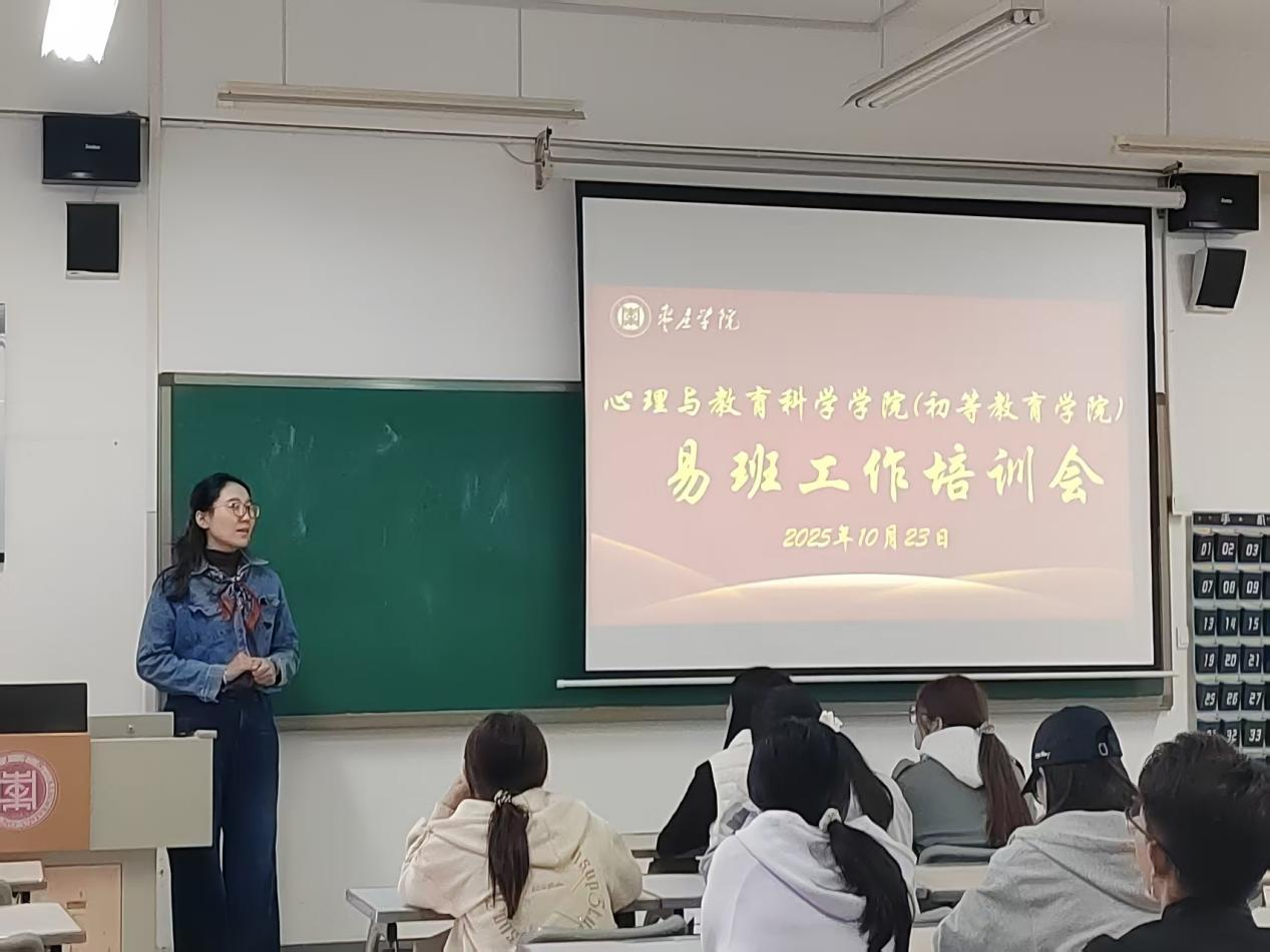10月23日,心理与教育科学学院(初等教育学院)在教学楼309室召开易班工作培训专题会议,学院易班工作站全体成员、2025级各班易班班长共计20人参加会议,会议由学院易班工作指导老师张丽嫱主持。