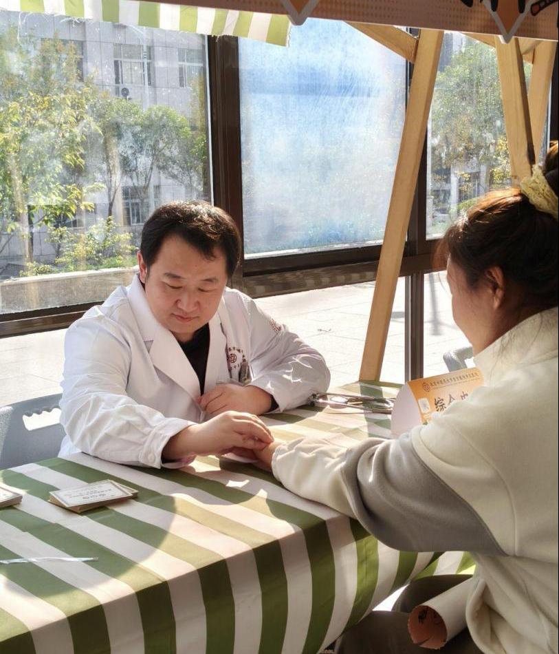 活动设置义诊、体验、茶饮与文创四个板块。义诊区由专家团队开展把脉问诊、体质辨识与个性化调理建议,重点关注换季感冒、颈肩不适、睡眠与情绪管理等学生常见问题;体验区教授常用穴位按压与耳穴贴压,并开展艾灸与松筋等中医适宜技术,现场服务百余人次;茶饮区推出“节气养生特调茶饮”,讲解金银花、菊花、陈皮等常见药材功效,提供品饮体验600余人次、发放《四季养生手册》300余份;文创区展示中医主题书签、盲盒与艾草DIY等,提升文化亲近感与参与度。