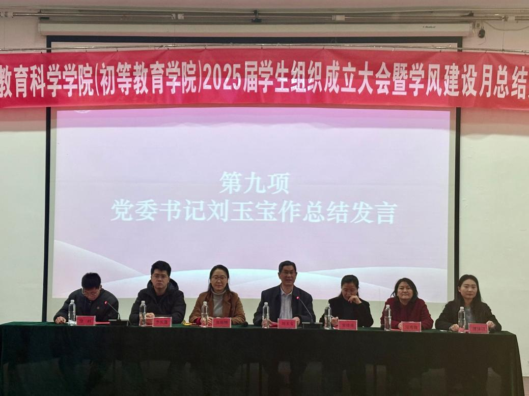 为加强学生组织建设,凝聚青春力量,进一步巩固学风建设成果,11月19日下午,心理与教育科学学院(初等教育学院)于文科楼报告厅举行2025届学生组织成立大会暨学风建设月总结表彰大会,学院党政领导、专职辅导员,2025届学生会、自律会全体成员及各班级代表共计260余人参加。