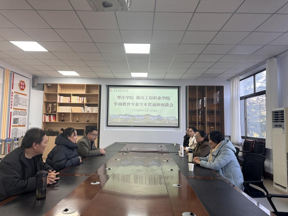 2025年12月25日,心理与教育科学学院(初等教育学院)院长傅金兰、副院长安洪涛在潍坊工程职业学院教师教育学院会议室与潍坊工程职业学院学前教育专业师生举行座谈会。