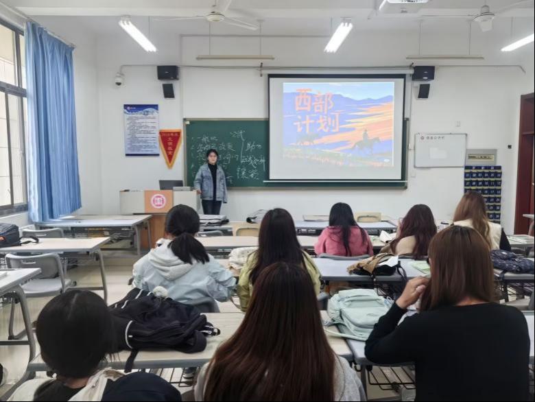 活动中,各团支部围绕西部计划政策背景、服务内容、招募流程、保障机制与发展前景进行了系统的学习。通过团干部的详细解读、往届志愿者案例分享、主题视频观看等多种形式,教育帮扶、乡村振兴、基层服务等西部一线的生动实践被一一呈现。现场气氛热烈,“到西部去、到基层去、到祖国最需要的地方去”的时代强音深入人心,有效激发了同学们扎根基层、服务社会的青春热情。互动中同学们结合自身专业特长与职业规划,围绕报名条件、岗位适配、职业发展等具体问题进行探讨和咨询,进一步明晰了参与路径。