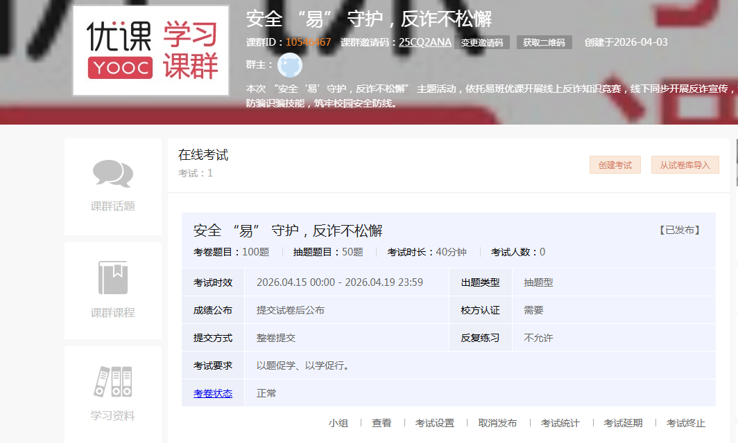 线上活动中,学院创新活动形式,依托易班优课平台精心搭建线上知识竞赛通道。此举打破了时间与空间的限制,引导同学们利用课余碎片时间自主学习和参与答题,竞赛取得良好成效,参与同学优秀率达较高水平,充分体现了同学们对反诈知识的扎实掌握,也有效调动了大家参与反诈学习和宣传的积极性和主动性。